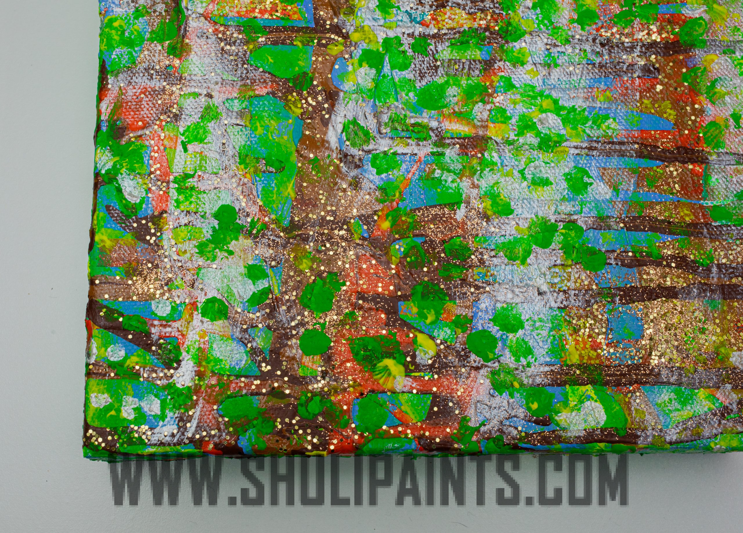 No framing necessary. Edges are fully wrapped and painted for easy hanging (painting continues on all sides).